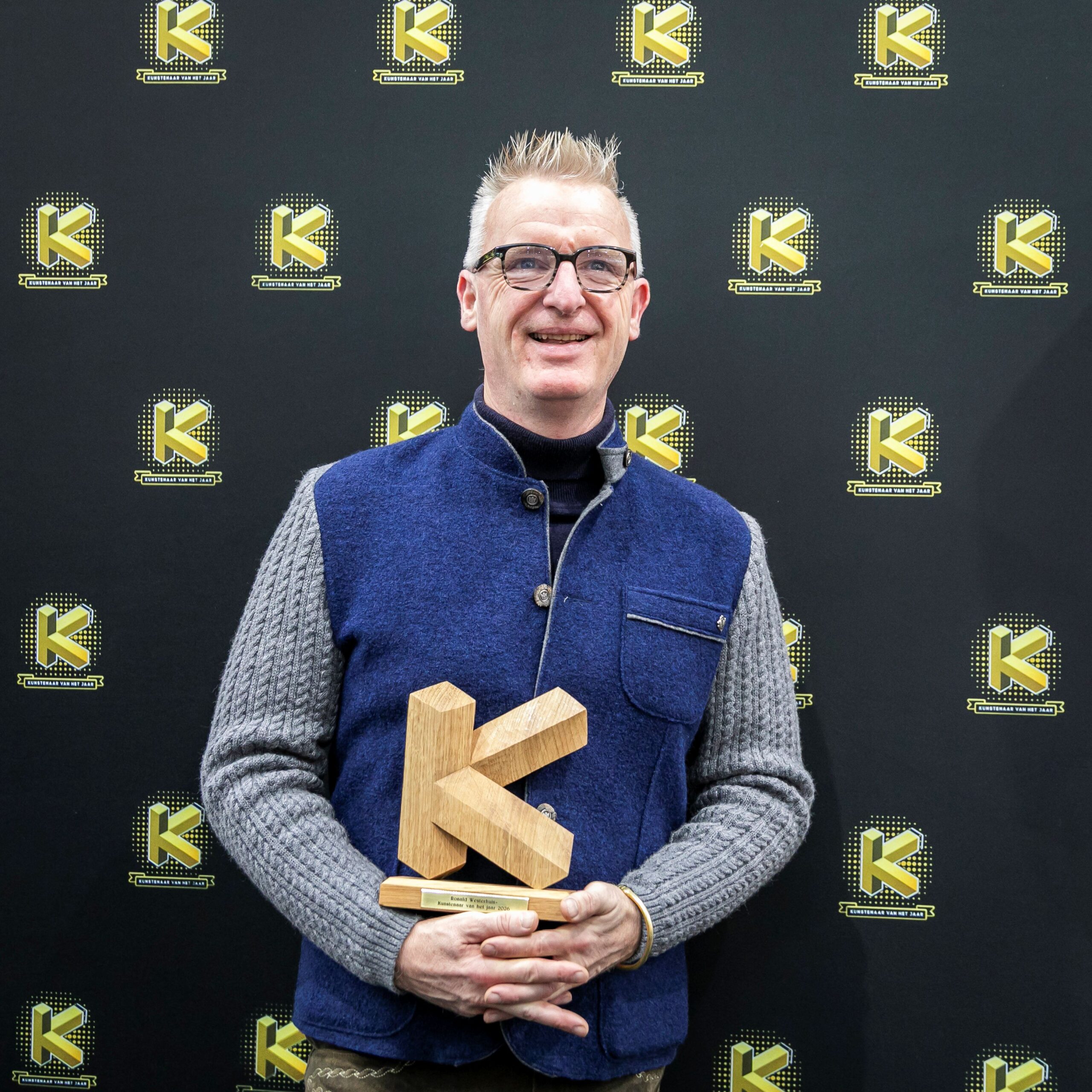 Uit acht finalisten is Ronald A. Westerhuis als Kunstenaar van het jaar 2026 gekozen. Hij ontving op zaterdag 15 november zijn trofee uit handen van zijn voorganger, Tjalf Sparnaay.